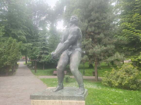 În 1977, în Parcul Universității ”Ștefan cel Mare” a fost dezvelită statuia ”Aruncătorul de ciocan”. Nu este vorba despre un muncitor supărat că șeful l-a pus să facă treabă și de nervi a aruncat ciocanul, ci despre un sportiv. Da, da, în atletism există o astfel de disciplină, care este cuprinsă și în calendarul jocurilor olimpice de vară. Opera maestrului Jalea este foarte reușită, iar de acest lucru își poate da seama și un nespecialist. Monumentul este impresionant și ca dimensiuni, avînd o înălțime de 2 metri și 30 de centimetri. Statuia se află pe un soclu din travertin cu înălțimea de un metru. Din păcate, atletul a rămas de multă vreme fără obiectul muncii, cum s-ar spune, adică fără ciocan. Probabil că cei care stau prin parc se întreabă ce-o fi vrînd să însemne statuia respectivă. Adică, ce face de fapt omul acela cu mușchii încordați?