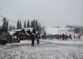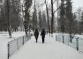 Parcul central este și mai frumos atunci cînd ninge și-i scoate din casele lor și din spațiile de cazare pe copii, tineri și mai puțin tineri la o plimbare pe jos sau cu sania. Undeva, în mijlocul parcului, Izvorul Sentinela, monument istoric, așteaptă să vină primăvara și să înceapă odată proiectul pentru refacerea sa. Patinoarul și pîrtia de schi asigură un plăcut zgomot de fond, responsabili cu producerea acestuia fiind elevii aflați în vacanța de schi, profesorii și părinții lor.