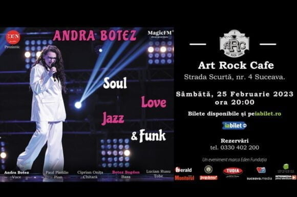 Andra Botez va susține un concert la Suceava, la Art Rock Café pe 25 februarie, începînd cu ora 20.00. Pe scenă vor mai fi Paul Pintilie – pian, Bogdan Botze – bass, Ciprian Onița – chitară și Lucian Rusu – tobe. Într-o scurtă prezentare, Emil Orban, președintele Fundației Eden, arată: ”Cînd muzica și cuvintele reușesc sa creeze o legătură puternică, atunci de fapt se vorbește despre emoție artistică, iar Andra Botez Quartet transmite această emoție printr-un repertoriu divers: de la standarde de jazz pînă la compoziții proprii. Improvizația și jocul interpretativ crează o atmosferă captivantă, plină de carismă. Cei cinci membri ai proiectului îmbină profesionalismul muzical, datorat experienței individuale, cu pasiunea pentru a cînta”.