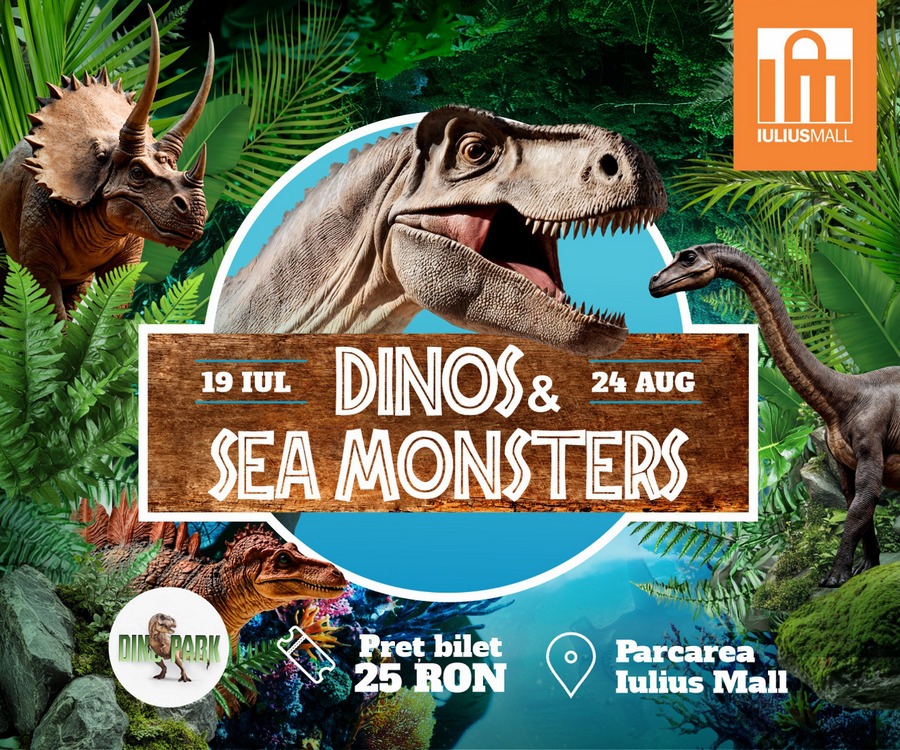O călătorie în timp, chiar în Era Mezozoică, când planeta era populată de giganții dinozauri, îi așteaptă pe cei dornici să descopere misterele animalelor preistorice. 50 de exemplare de dinozauri și animale marine preistorice transformă parcarea Iulius Mall într-o lume desprinsă din Jurassic Park, odată cu expoziția Dinos & Sea Monsters.