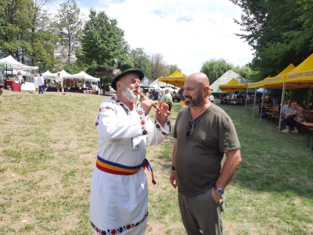 Pînă duminică, 31 iulie, Muzeul Satului Bucovinean din Suceava găzduiește o nouă ediție a manifestării „Lume, lume…, hai la tîrg!”, la care sînt prezenți numeroși meșteri populari și diverși producători de bunătăți. Tîrgul s-a deschis astăzi, la prînz, în prezența vicepreședintelui Consiliului Județean Niculai Barbă, a directorului Muzeului Național al Bucovinei, Emil Ursu, a managerului Bibliotecii „I. G. Sbiera”, Gabriel Cărăbuș, și a lui chef Cătălin Scărlătescu. Chef Scărlătescu va găti pentru public. El și-a făcut un selfie cu un bărbat îmbrăcat în costum popular care i-a cîntat la fluier. În fiecare din cele trei zile, după ora 16.00, vor susține momente artistice membri ai Ansamblului „Ciprian Porumbescu”. Tîrgul este deschis în intervalul orar 09.00 – 20.00, iar prețurile biletelor de intrare sînt următoarele: 4 lei pentru adulți, 2 lei pentru pensionari și 1 leu pentru copii, elevi și studenți.