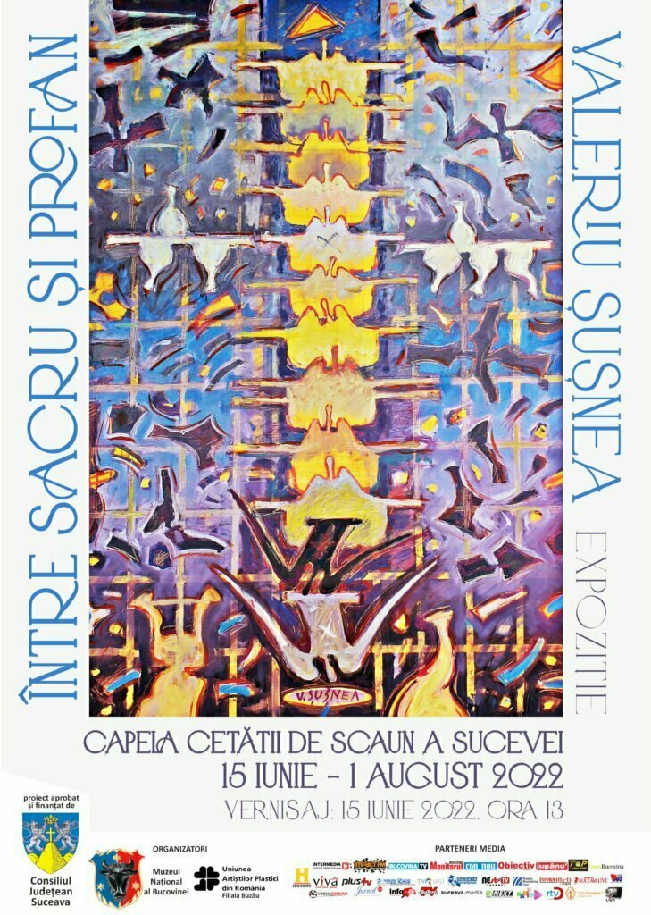 Între 15 iunie și 1 august, Capela Cetății de Scaun a Sucevei va găzdui expoziția de pictură „Între sacru și profan” a artistului plastic buzoian Valeriu Șușnea. Vernisajul va avea loc miercuri, 15 iunie, începînd cu ora 13.00. Muzeul Național al Bucovinei a transmis că vor fi expuse 30 de lucrări reprezentative realizate în ulei pe pînză, care prezintă două teme diametral opuse, într-o mișcare succesivă de la profan la sacru. Valeriu Șușnea este restaurator în pictură murală de epocă, doctor în arte plastice și decorative, precum și profesor și realizator de emisiuni culturale de radio și televiziune.