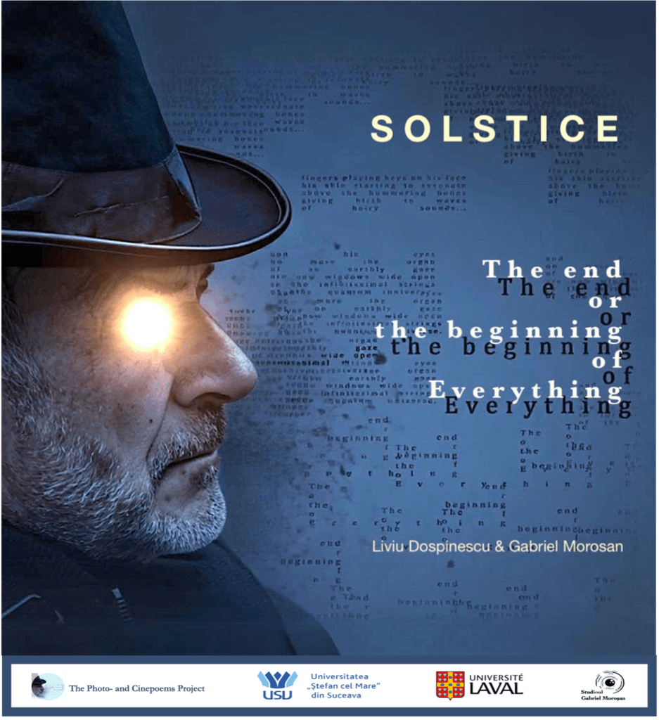 ”La Solstițiu: The End or the Beginning of Everything este un spectacol performativ, aflat la limita dintre lumină și întuneric, între sfârșit și început, între rostire, imagine și imaginar, prezentat de The Photo- and Cinepoems Project. Inspirat de fotopoemele artiștilor Liviu Dospinescu și Gabriel Moroșan, evenimentul este ultimul act al expoziției acestora, Photopoems/ Fotopoeme, deschisă în perioada 6-20 iunie la Universitatea <Ștefan cel Mare> din Suceava, și celebrează, în același timp, solstițiul. Spectacolul reunește poezie rostită live, proiecții video ale fotopoemelor și muzică într-o formă hibridă ce evocă ritualul, visul și revelația.