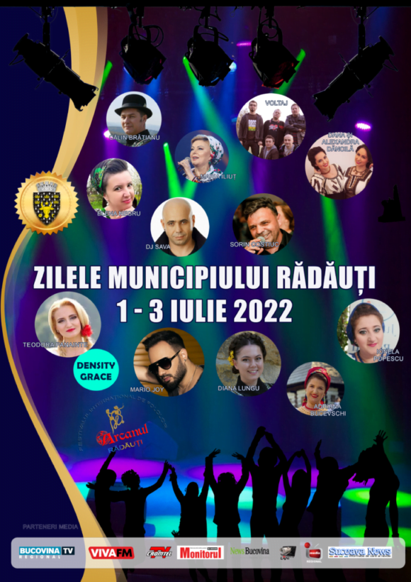 În perioada 1 – 3 iulie, municipiul Rădăuți va găzdui zilele orașului și cea de-a XXIX-a ediție a Festivalului Internațional de Folclor „Arcanul”. La festival vor participa aproximativ 20 de ansambluri artistice din Serbia, Polonia, Ucraina, Turcia, Slovenia, Republica Moldova și România. Vineri, 1 iulie, începînd cu ora 11.00, doctorul în istorie Daniel Hrenciuc își va lansa cărțile „Criza ucraineană” și „Maghiari în Bucovina”, la Biblioteca „Tudor Flondor”. În aceeași zi se vor vernisa expoziția taberei de pictură „Traian Postolache” și o expoziție de cămăși tradiționale, va avea loc o paradă a cîntecului, dansului și portului popular și le va fi înmînată „Diploma de aur” cuplurilor care au împlinit 50 de ani de căsătorie. Seara se va desfășura un spectacol folcloric în care vor cînta Adriana Bucevschi, Dana Dăncilă și Alexandru Dăncilă. Pe 2 iulie sînt programate competiţii sportive, un spectacol de varietăţi și reprezentații ale ansamblurilor din străinătate venite la „Arcanul”. Pe scena special amenajată în piața centrală, de la ora 21.00 va evolua Sorin Costiuc Band, iar de la ora 21.45 trupa Voltaj. Începînd cu ora 23.00 va fi un foc de artificii. Duminică, 3 iulie, de la ora 12.00 va avea loc o nouă paradă a cîntecului, dansului și portului popular. La ora 14.00 va debuta festivitatea de închidere a Festivalului „Arcanul”, iar la ora 16.00 va începe un spectacol de muzică populară în care își vor da concursul Maria Iliuț, Călin Brăteanu și taraful, Elena Negru, Teodora Panaite, Diana Lungu și Ionela Popescu. În fine, începînd cu ora 21.00 vor concerta trupa Density Grace, Mario Joy şi DJ Sava.